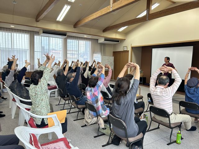またご自宅でも気軽にできる腰痛体操を参加者で体験しました。