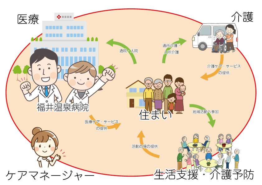 高齢化が進む中で、医療・介護・リハビリテーションなど、さまざまな医療・福祉サービスが連携し、地域全体で支えていく体制づくりが求められています。