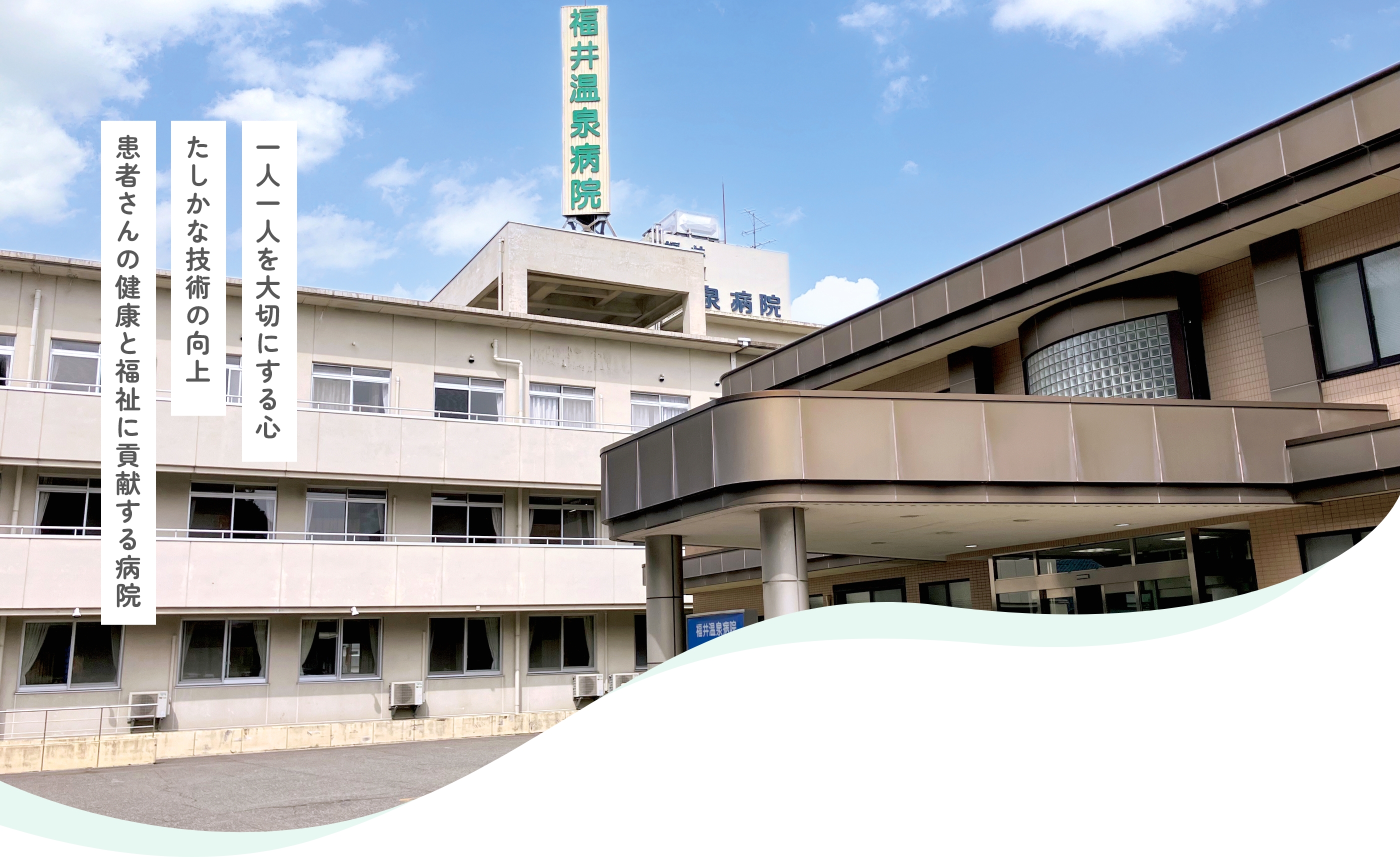 福井温泉病院は、豊かな自然に囲まれた静かな環境の中で、地域に根ざした医療を提供している病院です。