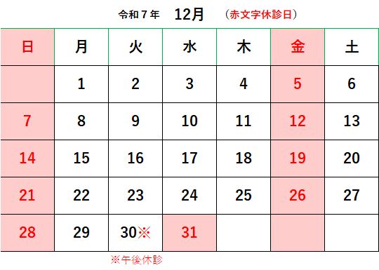 令和7年12月診療日カレンダー