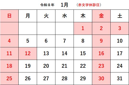 令和8年1月診療日カレンダー