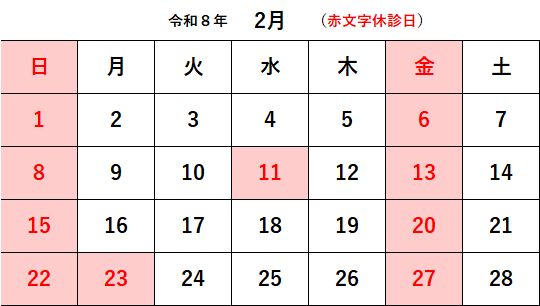 令和8年2月診療日カレンダー