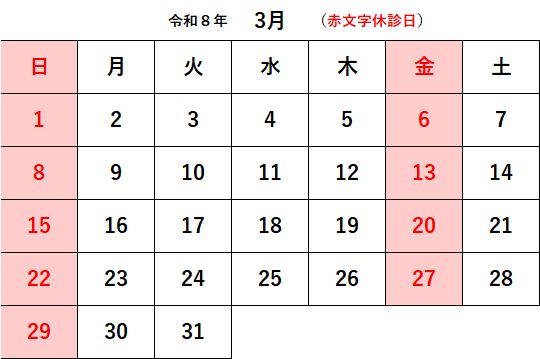 令和8年3月診療日カレンダー
